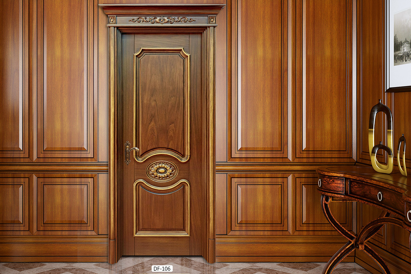 廠家直銷愉X-4061平開雕花仿古實木烤漆門