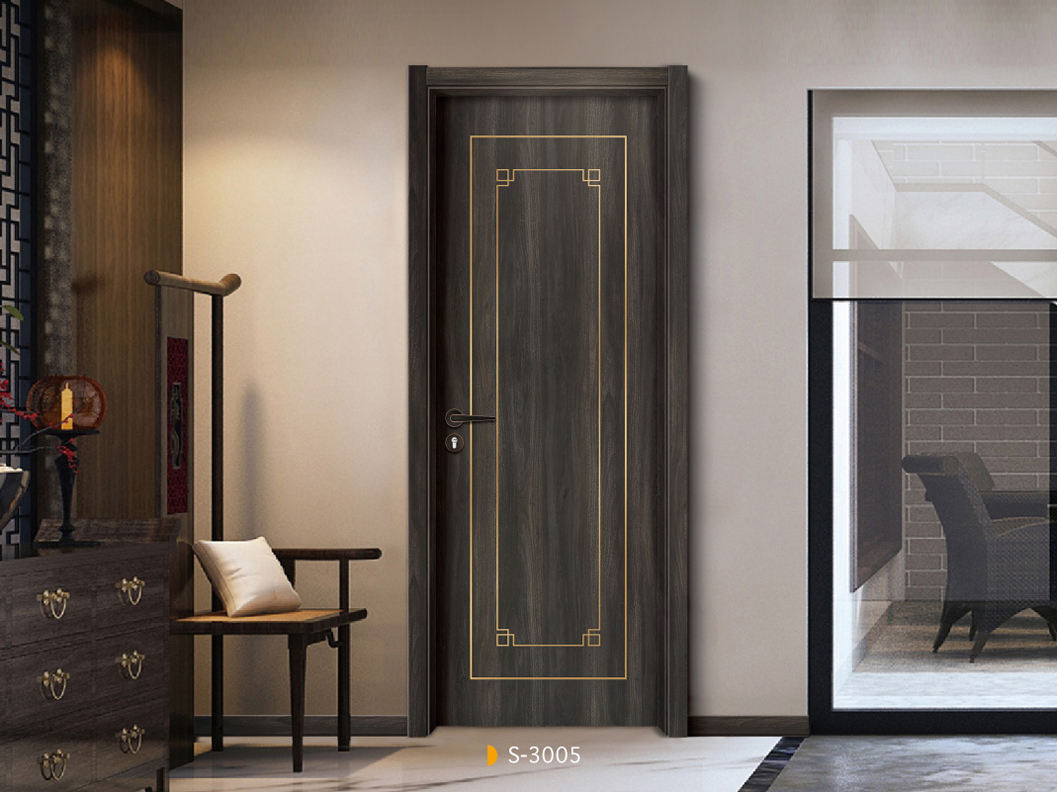 - 新款熱賣(mài)愉心S-3005鑲金屬條實(shí)木烤漆門(mén)